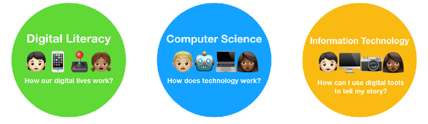 Computer Science: underlines the knowledge and skills relating to computational thinking, coding, algorithms and networks.