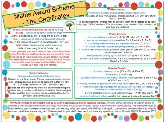 T​his scheme links to our bespoke maths curriculum, ensuring that progress is made in small steps with pupils aware of the end points of each award through regular, low-stakes testing and teacher support. Through this, we see the development of not only confident, accurate and effective mathematicians, but also motivated children who love maths and can apply their learning in a variety of contexts.